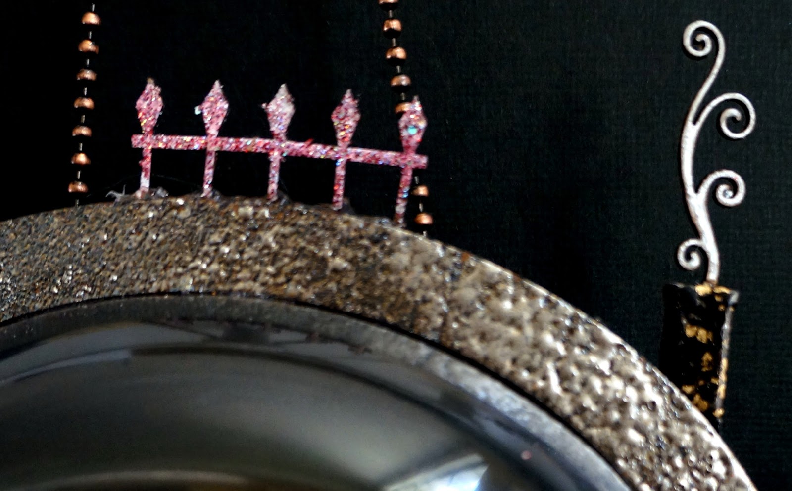Step 4: Applying Embossing Enamel to clothespins and book board charms: Using Piccolo Embossing Powder Adhesive apply one coat to two clothespin top surfaces and to the mini heart and key charms from the My Heart Charm Set. Dust each with Piccolo Poodle Skirt Enamel Powder and use tweezers to handle the mini heart and key charm remove excess enamel powder. Set with a heat gun and let cool and then repeat the heat enamel process again two more times starting with the Piccolo Embossing Enamel each time (this will add a nice smooth texture, amazing depth of color, sparkle and dimension to the charms and clothespin surfaces). Once set and cool, repeat on other side of the key and heart. Once enamel powder is set and cool on both clothespins and charms, apply Glastique Gloss Finishing Glaze to each area that has enamel powder (use straight pin to assist in applying Glastique on mini charms). Set aside to dry.