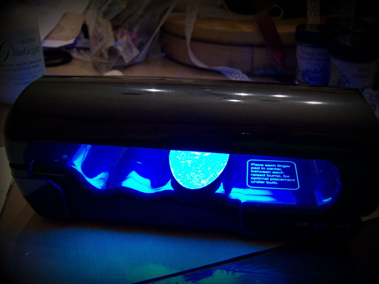 - Use the adhesive fluid to ink up your letter. Stamp on the base and emboss using the Micro Black. Do this for each base.