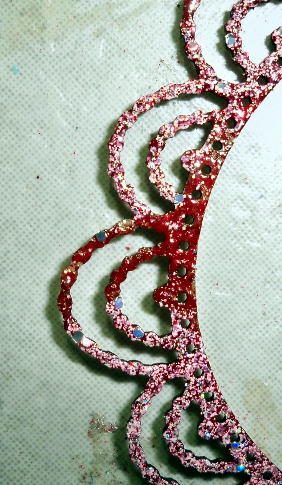 - Cut strips of the red cardstock 1 1/4" wide. Die cut with the edge dies.